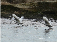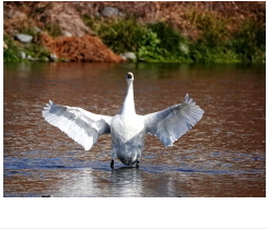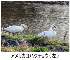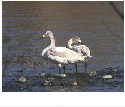 解説:多摩川等大きな河川で少数が稀に観察される。水際の雑草等を餌に越冬する個体もいる。亜種アメリカコハクチョウも記録されている。