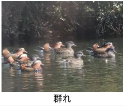 解説:オシドリはオスの華麗な出で立ちでよく知られる。メスは対照的に地味であるが、胴体の白斑と目の後方の明瞭な白線で、他のカモのメスとの識別は容易である。当地ではなかなか見ることが難しいが、近年、丘陵地にある都市公園の池や団地の調整池等での観察例が増えている。