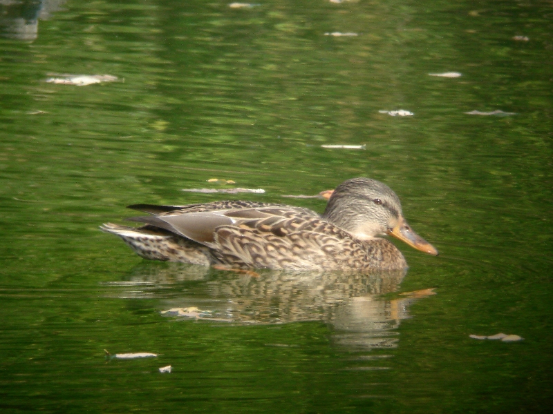 カモのメスは似たような色彩が多いが、マガモも御覧の通りの姿である。カルガモはクチバシの先端が黄色いが、マガモのメスは橙黄色のクチバシの上面に黒い部分がある。