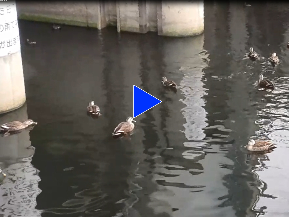 多摩川探鳥会にて カルガモの群れ