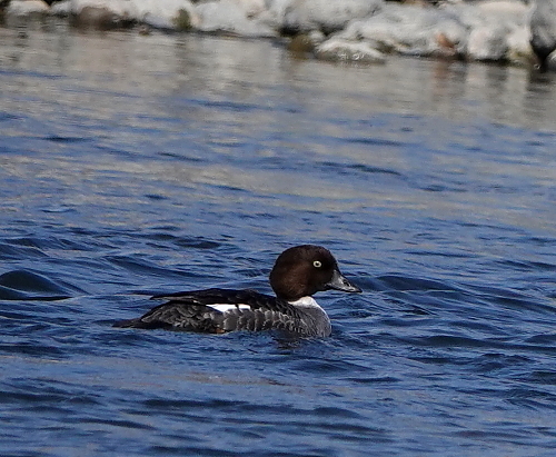 見慣れないカモがいたので近寄って確認をしたらホオジロガモでした。