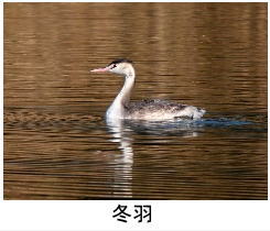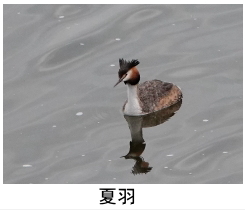 解説:カイツブリの仲間では最も大きい。当地では冬季ごく稀に多摩川などに出現することがある。冬羽は黒褐色と白色の地味な色合いだが、春先になると顔が赤褐色を増し、頭の黒い冠羽も伸びてきて、徐々に派手な色合いとなる。