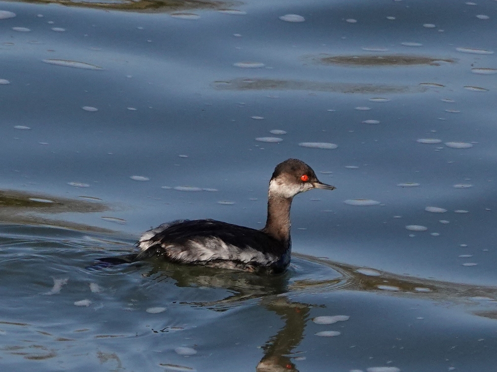 河原を歩いていると、黒っぽいカイツブリがいたので、よく見ると目が赤く、ハジロカイツブリと判断した。この辺りでは珍しい。