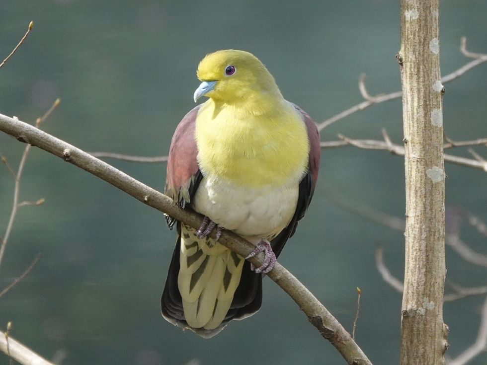 トンボ池をみているとアオバトがスウーッと飛んできて目の前数メートル先の木の枝に止まってくれた。まるで「写真を撮ってくれよ」と思われるほどジーッとしていてくれた。