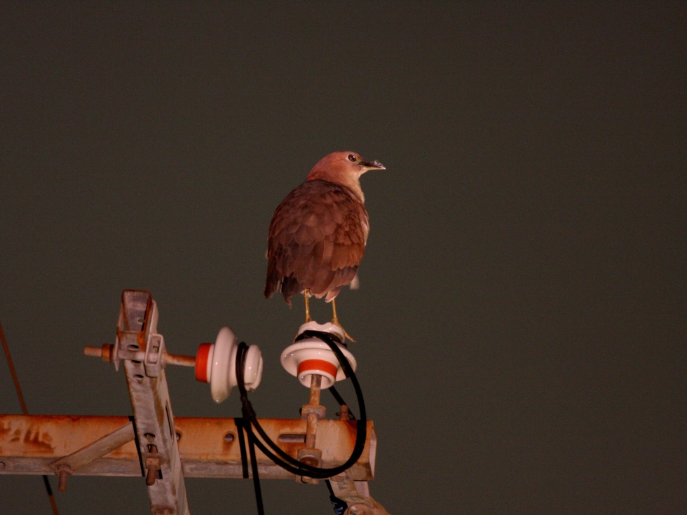丘陵地にある住宅街の電柱に止まり鳴き続けていました。