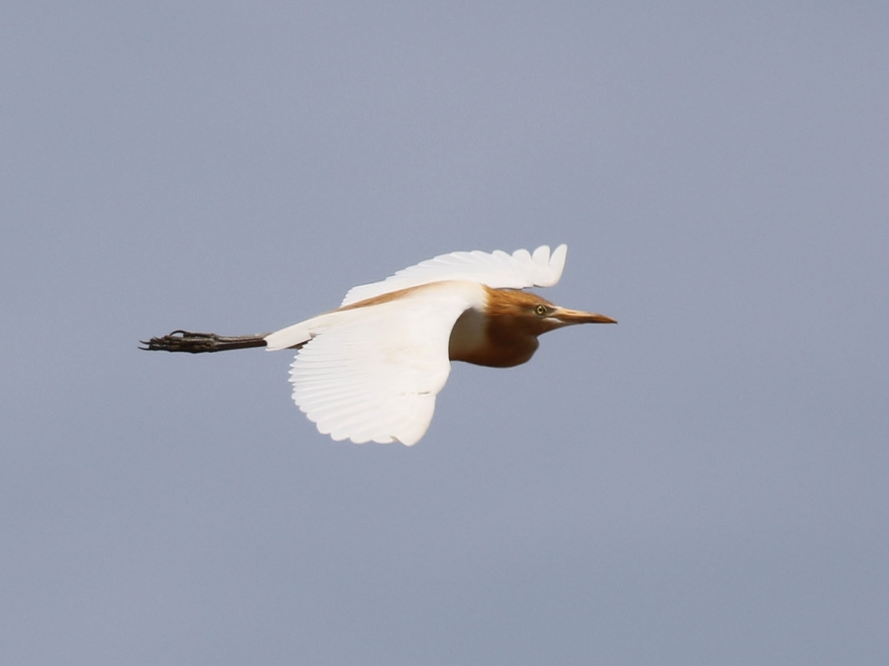 田起こしするトラクターの後を追いながら採餌、飛翔