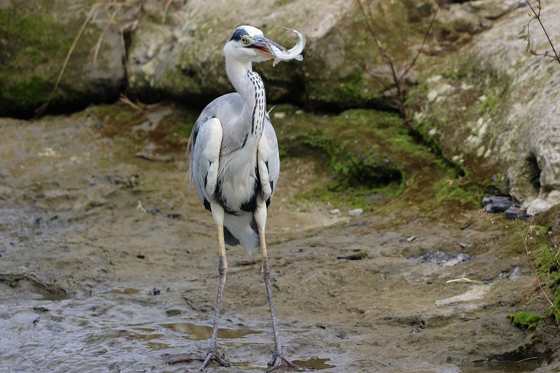 辛抱強く待ち、首を水中深くまで突っ込み採餌していました。