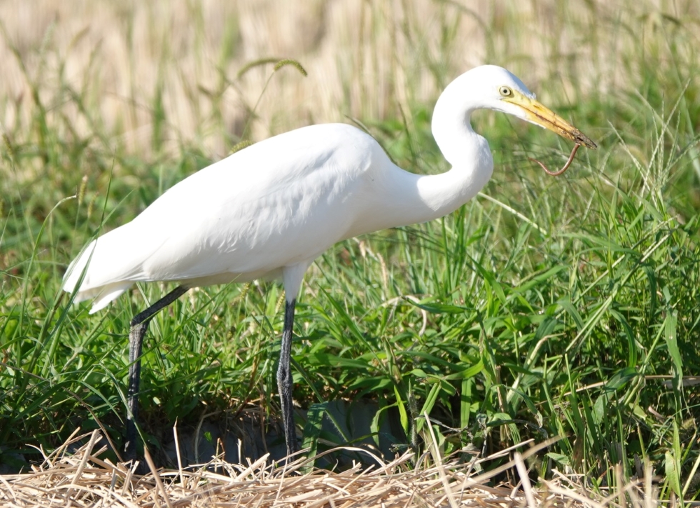 田んぼにくちばしを突っ込んで採餌していた。捕まえたのはミミズのようであった。