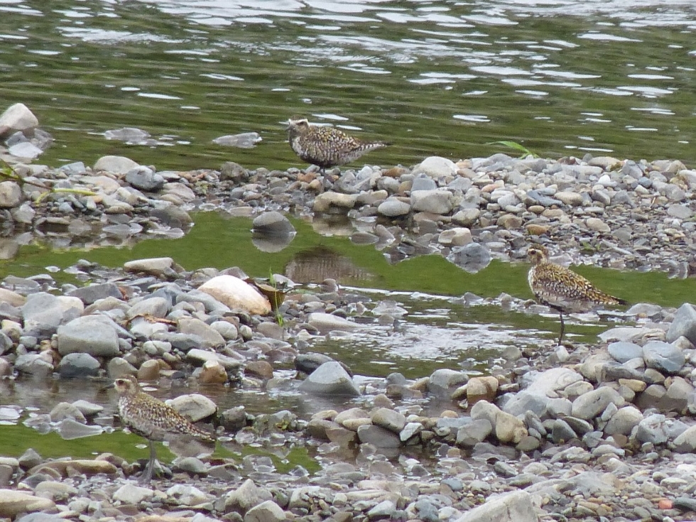 渡りのムナグロが浅川に来ているとの情報をもらい、一番橋下流の左岸を歩き、中洲に3羽のムナグロを確認した。