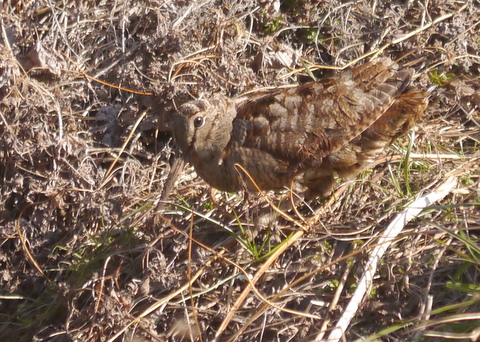 川口川対岸の岸辺をネコが降りていくと、1羽の鳥が飛び立った。直ぐに近くの草の茂みに飛び込んだ。シギのようだ。タシギのようであるが、タシギとは少し様子が異なる。ヤマシギであった。