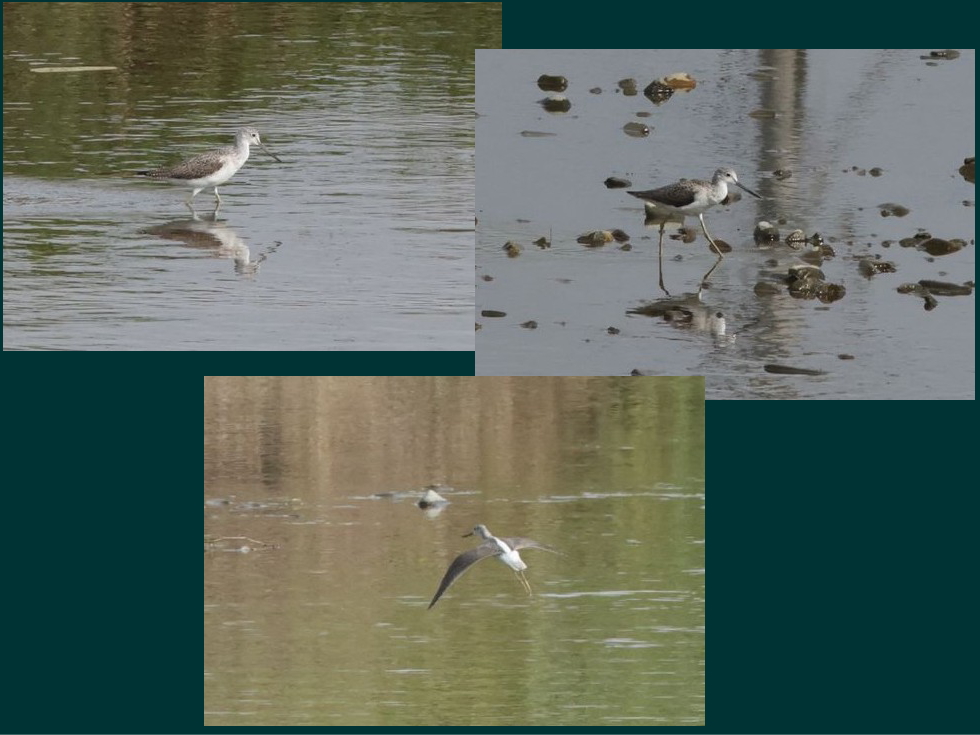 ふれあい橋上流右岸から対岸に何かいないか探していたら、アオアシシギを発見、下流方向に時々飛びながら移動し、見えなくなりました。腹部と飛んだ時の背中、腰、尾羽の白さが目立っていました。