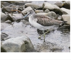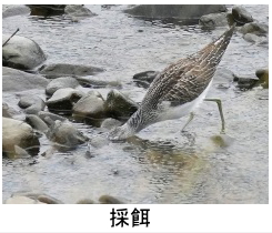 解説:中型のシギで、春と秋の渡りの時期に多摩川や浅川で稀に見られることがある。クチバシがわずかに上に反る。足色はやや緑がかっている。