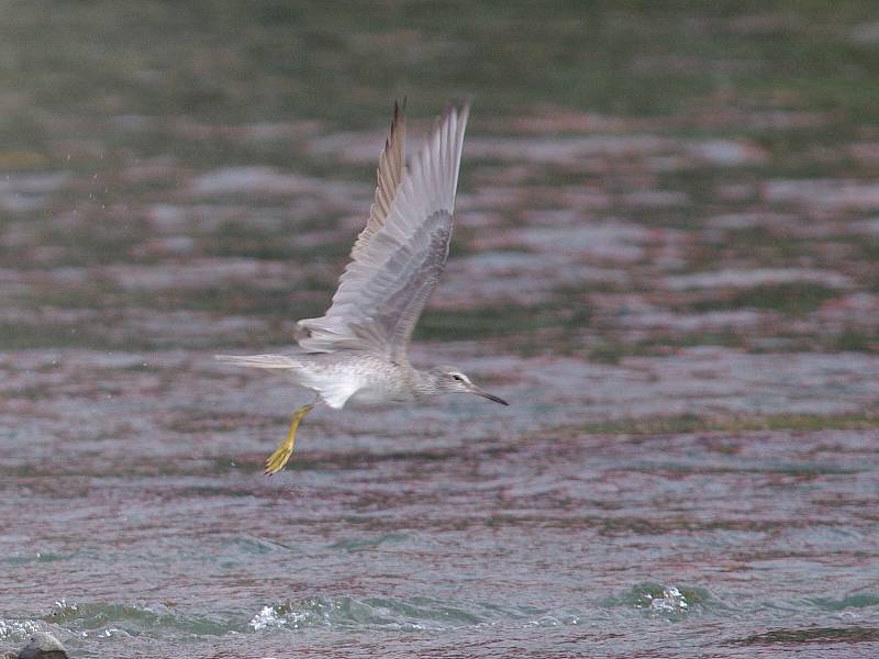 「ピュイー」と鳴いて飛び立ったキアシシギ。名前の通りの黄色い足がよくわかる。