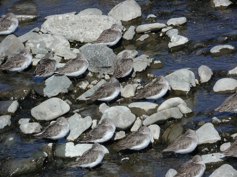 群れで休息するハマシギ。全て同じ方向を向いている。