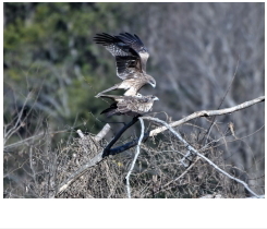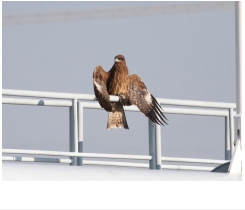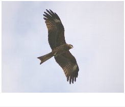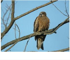 解説:当地で見られるタカの仲間で、一年を通して最も普通に見られる。そのせいか、タカの中では今ひとつ人気に欠けるが、クローズアップで捉えた顔はなかなか精悍であり、やはりタカはタカである。一般に、飛んでいるタカの識別はなかなか難しいが、トビは尾が凹型であることが特徴で、識別は容易である。しかし、尾はいっぱいに広げると凸型に見えることもあり、その場合には、翼端近くの白斑など他の特徴と合わせて判定する必要がある。羽ばたきはゆっくりで、時にピーヒョロロと鳴き大きく輪を描きながらゆったりと飛ぶ姿が見られる。