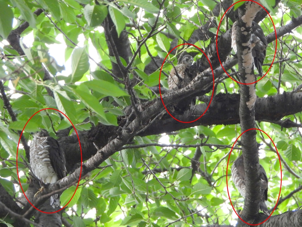 目の前で次々巣を離れ、10m程離れた別の木に飛び移って行きました。
