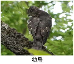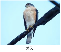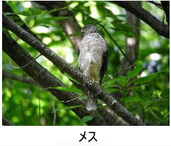 解説:オスはヒヨドリくらい、メスはキジバトくらいの小型のタカである。比較的市街地に近い公園などでも少数が繁殖している。