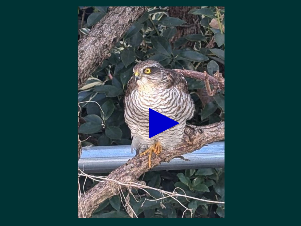 自宅庭のキウイ棚で鳥らしきものをむさぼり食べていた。