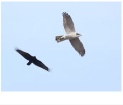 解説:当地では代表的なタカで繁殖もしている。成鳥は腹部に細かな横班があるが全体的には白っぽく見え、遠くからでもとまっている姿を確認できることがある。主にハト類やカモ類などの中型の鳥類を餌とする。上空ではカラスにモビングされている姿が見られることも多い。