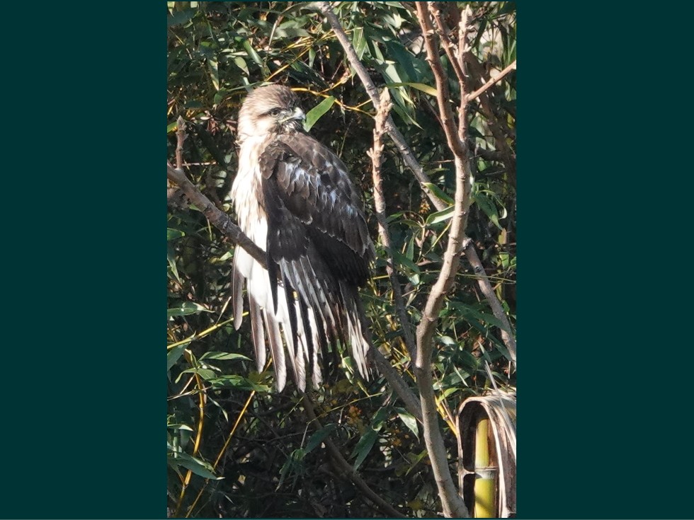 河原の中の林に眼を向けるとノスリが枝に止まっていました。