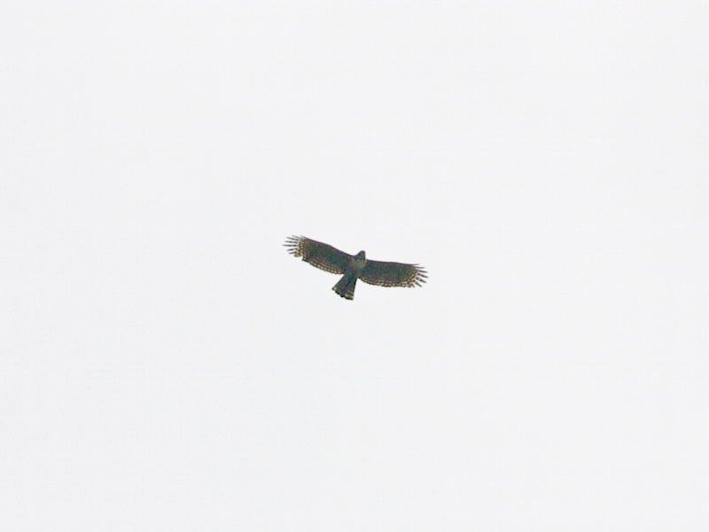 林道を歩いていると、稜線から大型のタカが現われ、上空を旋回後飛び去った。