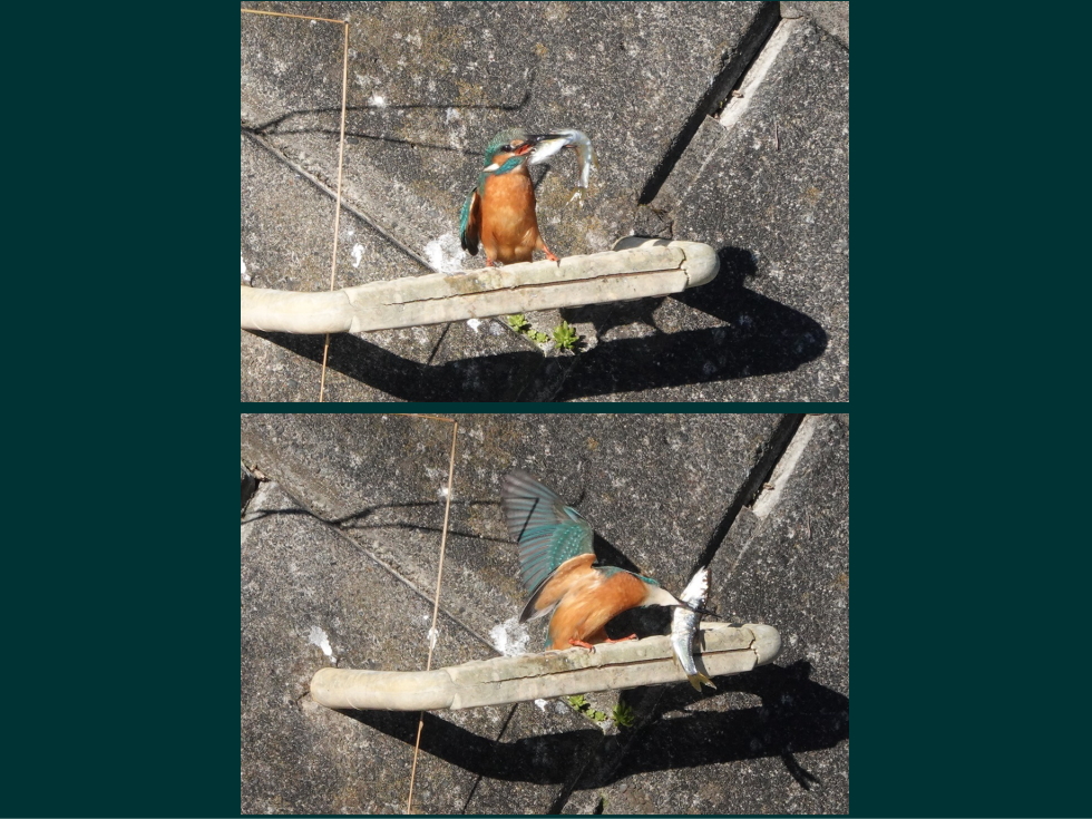 捕った魚が大き過ぎて一気に食べられない。魚の背骨を柔らかくするためか、何回も何回も何回も咥えた大きな魚を足元に叩きつけていた。