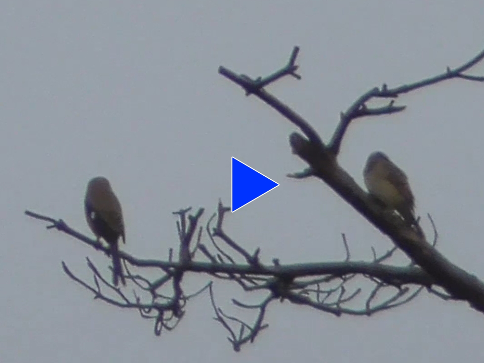 モズの止まっている木にアリスイがやってきて、モズに近づいていく。モズは嫌がっているようにみえるのだが。