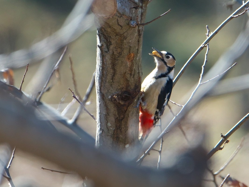 自宅前の栗畑で「コツコツ」と長い時間餌探しをしていました。顔が半分ほど入る穴が出来て、しばらくしてカミキリムシ(?)の幼虫をゲットしました。