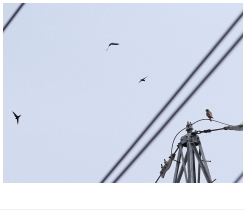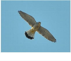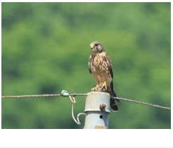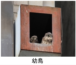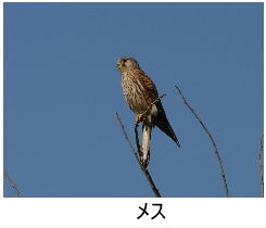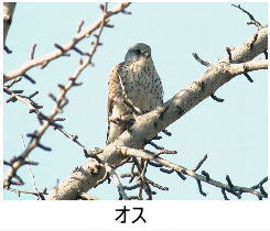 解説:小型のハヤブサの仲間で、ハトほどの大きさしかない。当地では通年生息しており、比較的見かける機会が多い。気をつけていると、鉄塔の上や、建物のアンテナなどで周囲を見渡している姿や、上空を旋回している姿などを見ることができる。当地で繁殖もしており、橋やビル等の人工物などを利用して営巣する。