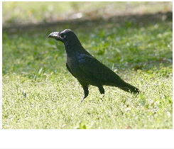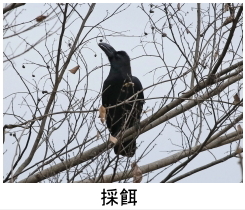 解説:当地で普通に見られるカラスは、「ハシブトガラス」と「ハシボソガラス」の2種類である。 一見すると区別がつきにくいが、鳴き声(ハシブト:「カーカー」澄んだ声が多い、ハシボソ:「ガーガー」濁った声)、額の形(ハシブト:おでこの毛が盛り上がっていることが多い、ハシボソ:盛り上がり少ない)、クチバシの形(ハシブト:太く大きく湾曲、ハシボソ:やや細く湾曲少ない)、鳴く時の姿勢(ハシブト:尾を上下に動かす、ハシボソ:頭を上下に動かす)、などの違いがある。