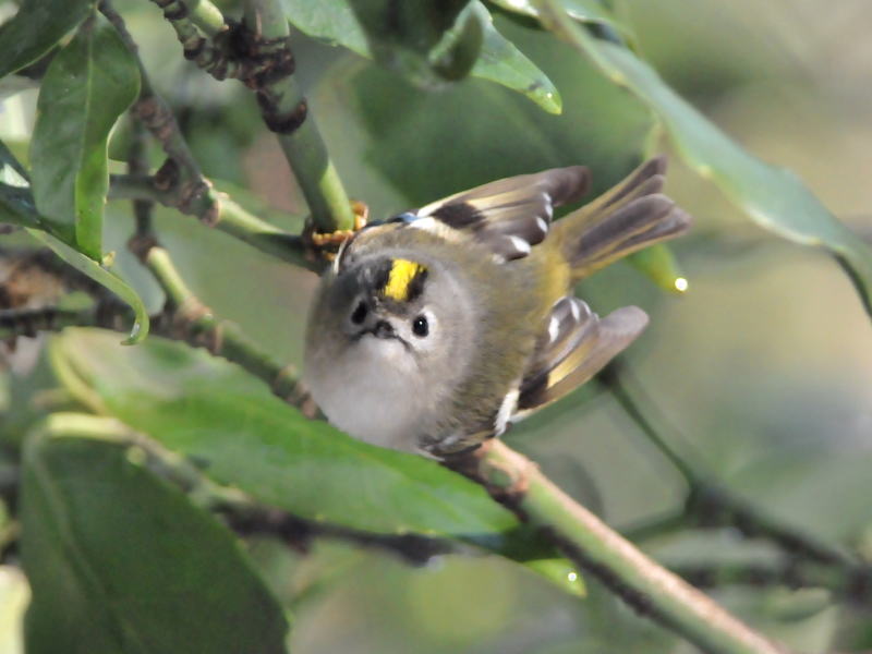 枯葉や針葉樹の中を動き回り、時々ホバリングして葉の裏の虫を探していました。