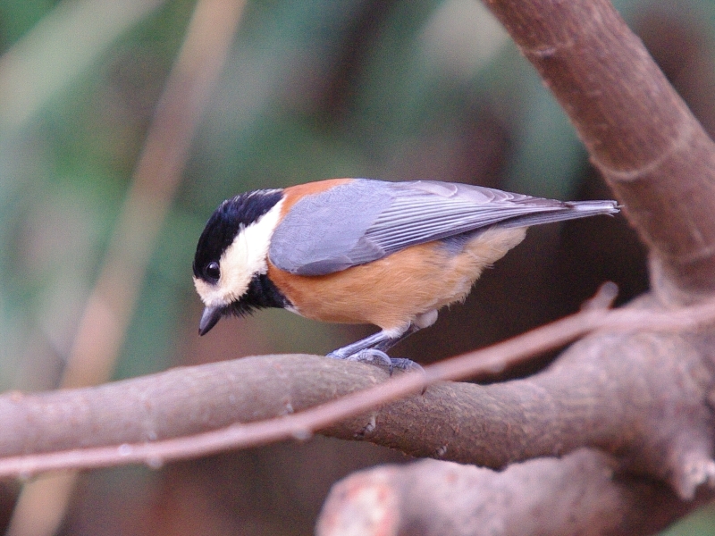 枝からじっと下を見つめるヤマガラ。虫でも狙っているのであろうか。