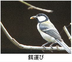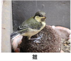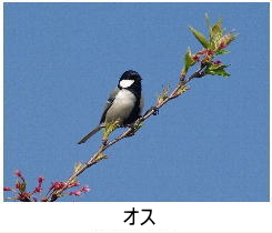 解説:民家の庭にも来る身近な野鳥である。庭の巣箱などにもよく営巣し、春〜初夏には雛の姿を目にする機会も多い。雌雄ともに頭と喉が黒く、頬が白い。喉から腹にかけて黒い縦線がネクタイのように走る。ネクタイはオスが太く、メスは細い。
