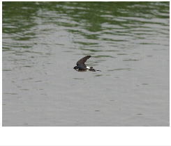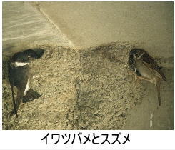 解説:ツバメほど有名ではないが、イワツバメもまた繁殖期を日本で過ごす夏鳥である。一見ツバメと似ているが尾の切れ込みが浅く、全体にずんぐりして見える。腰と体の下面は白く、飛翔時には目立つポイントである。当地ではツバメよりやや早く姿を見せ、早めに渡去する傾向があるようだ。河川の橋の下や線路の高架下等で集団営巣する様子が観察できる。