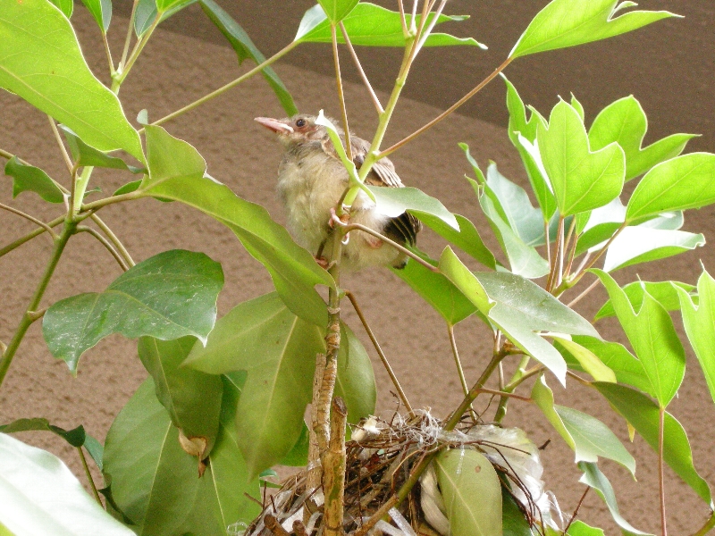 自宅の庭で巣立ったばかりのヒヨドリ。。