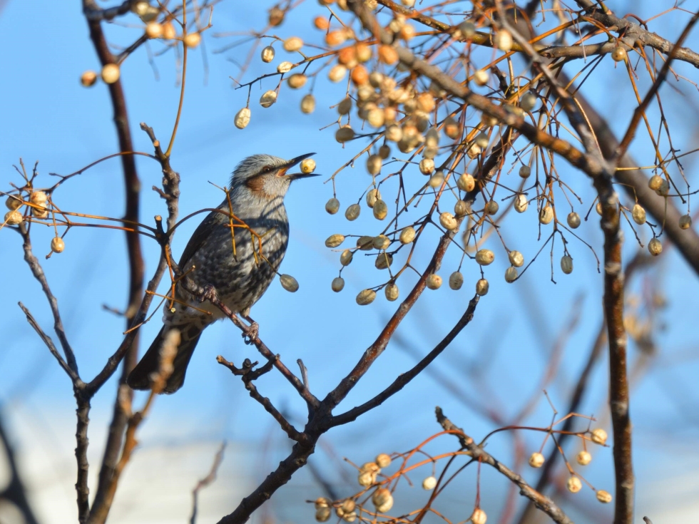 人には少し毒のある実とのことですがヒヨドリは食べます。