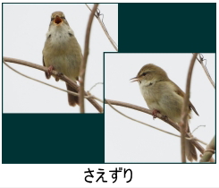 解説:ウグイスのさえずり「ホーホケキョ」は誰でも知っているが、突然、「ケキョ・ケキョ…」とけたたましく鳴くこともあり、この声は「谷渡り」と言われ、警戒した時に出す鳴き声とされている。笹薮の中などにいて、意外に姿を見るのは難しく、いわゆる「ウグイス色」のメジロを、ウグイスと思い込んでいる人もいるほど、姿は知られていない。声は大きいが、目立つ所で鳴いてくれないことも一因であろうか。あまりに繁殖期のさえずりが有名であるため、一年中生息している留鳥であることは、意外なほど知られていない。冬場は「チャッ、チャッ」と鳴く。この地鳴きは「笹鳴き」と言われ、同じ鳥とは思えないほどの落差である。