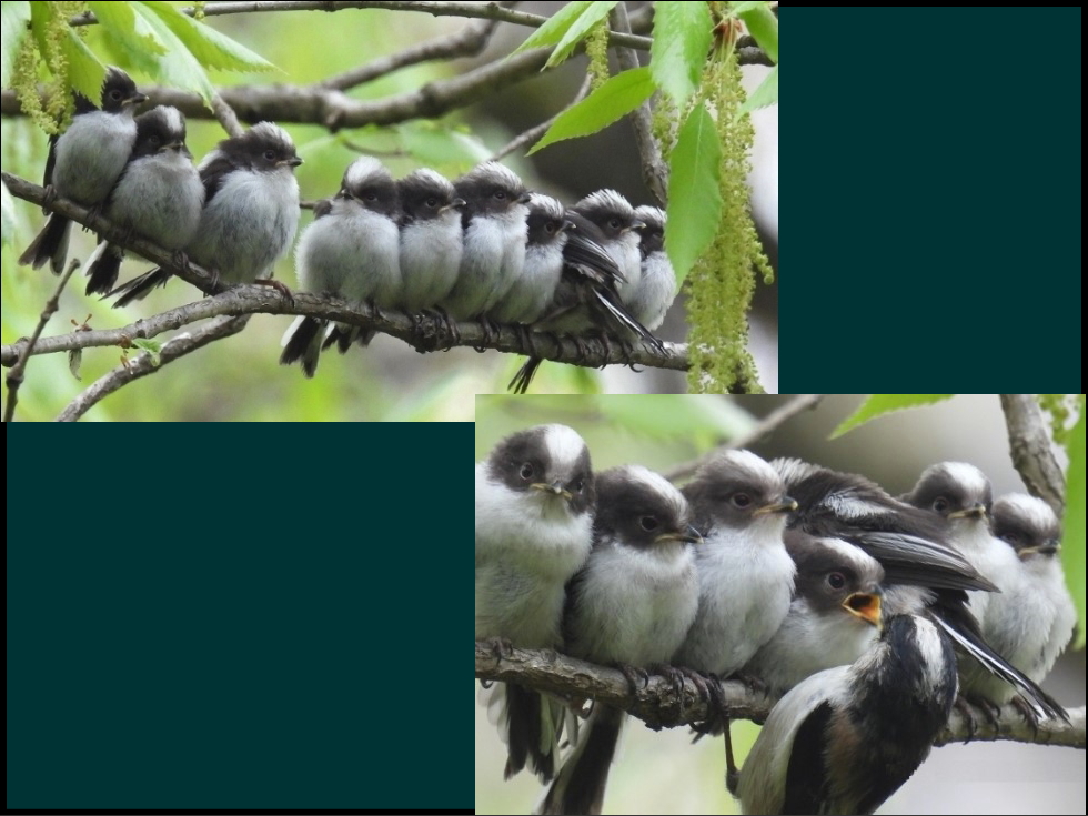 10羽がエナガダンゴになっていた。親たちが餌を運ぶ姿が健気でした。