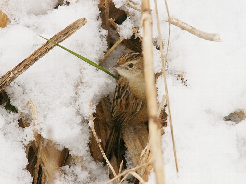 セッカは漢字で雪加と書きますが、冬にはあまり見かけません。今朝は雪が降っていました。雪の中のセッカを初めて見ました。