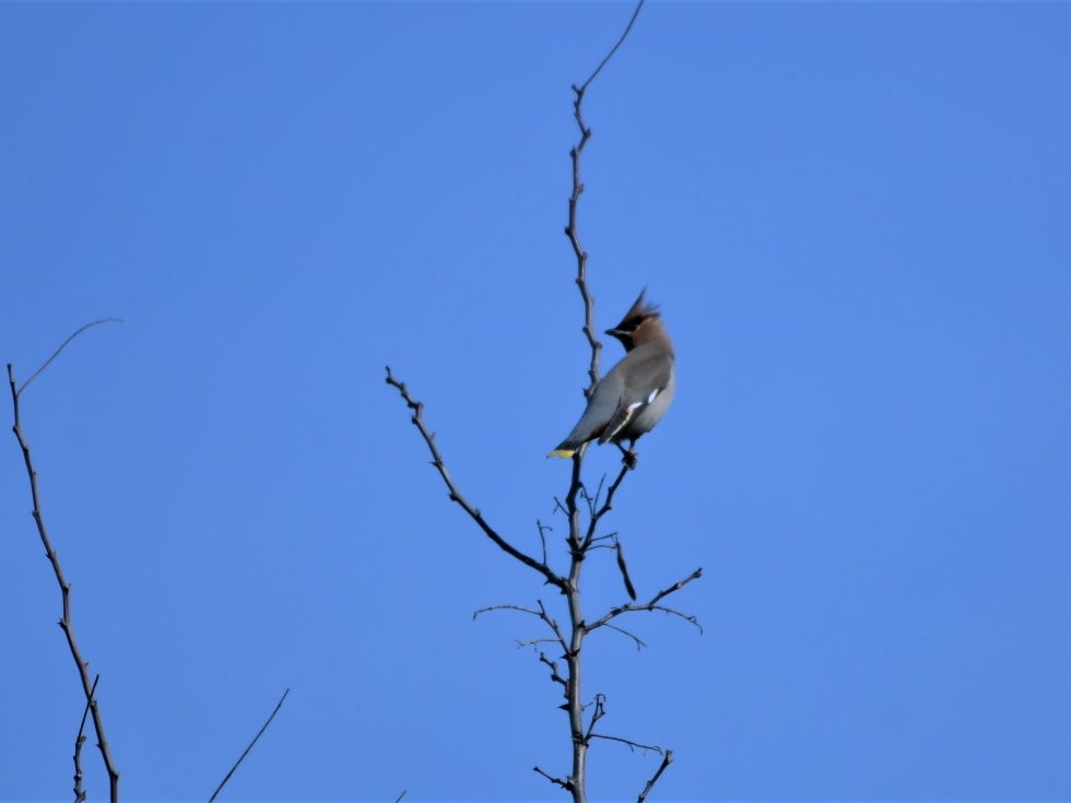 群れで行動するキレンジャクが1羽だけで止まっていました。逸れたのでしょうか。