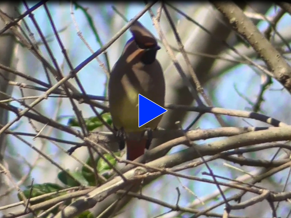 10羽以上の群れが多摩川河川敷にいて、ほとんどがヒレンジャクだが、キレンジャクも混じっていた。ときどき地面の水たまりに降りてくるので、そのタイミングを狙って撮影した。