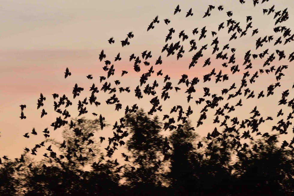 水浴び後、一時電線で待機し、竹藪へ入ります。