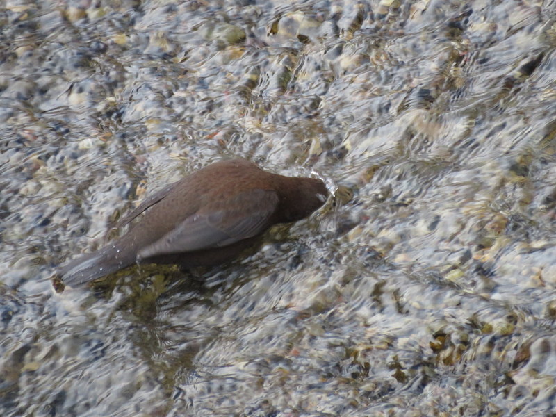 水中に潜ったり、川に頭を突っ込んだりを繰り返し、しばらくの間採餌していた。