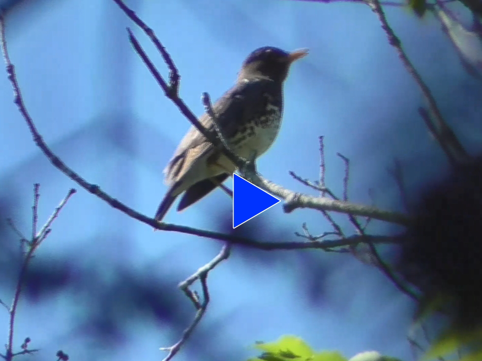 夏鳥調査中、尾根道でクロツグミの声が聞こえた。探してみると、木々の間から姿を確認できた。
