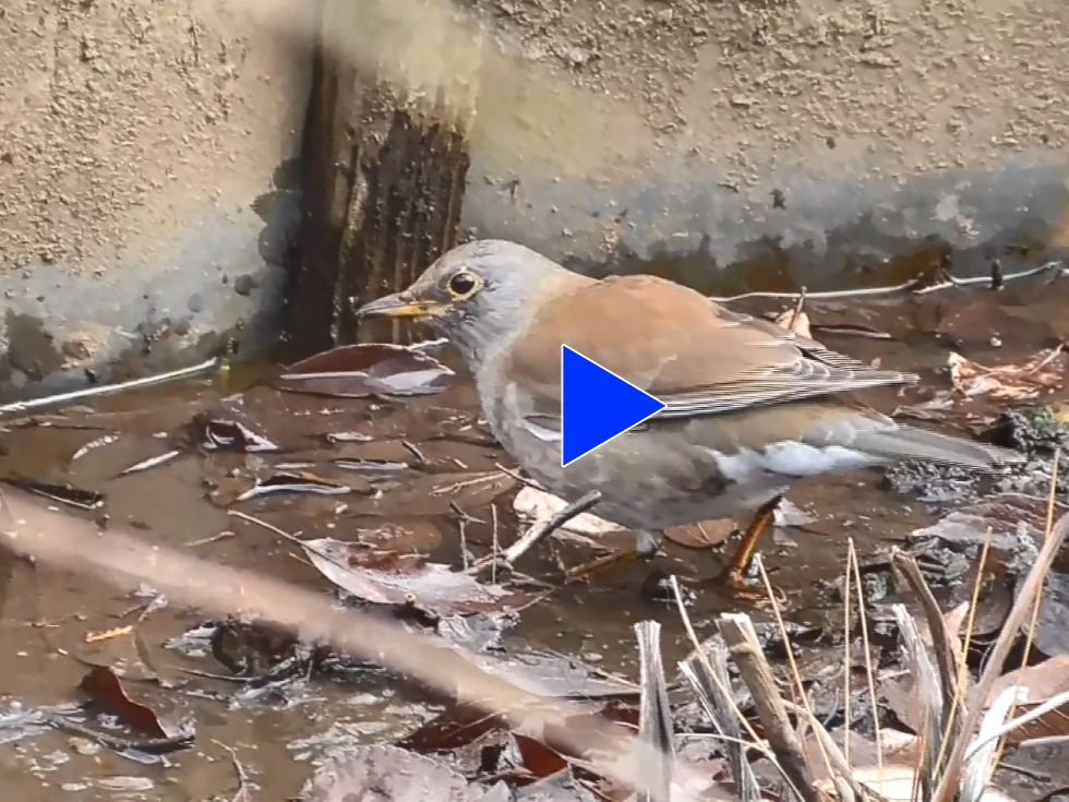 片倉城跡公園定期カウントにて 菖蒲田の水たまりで採餌するシロハラ