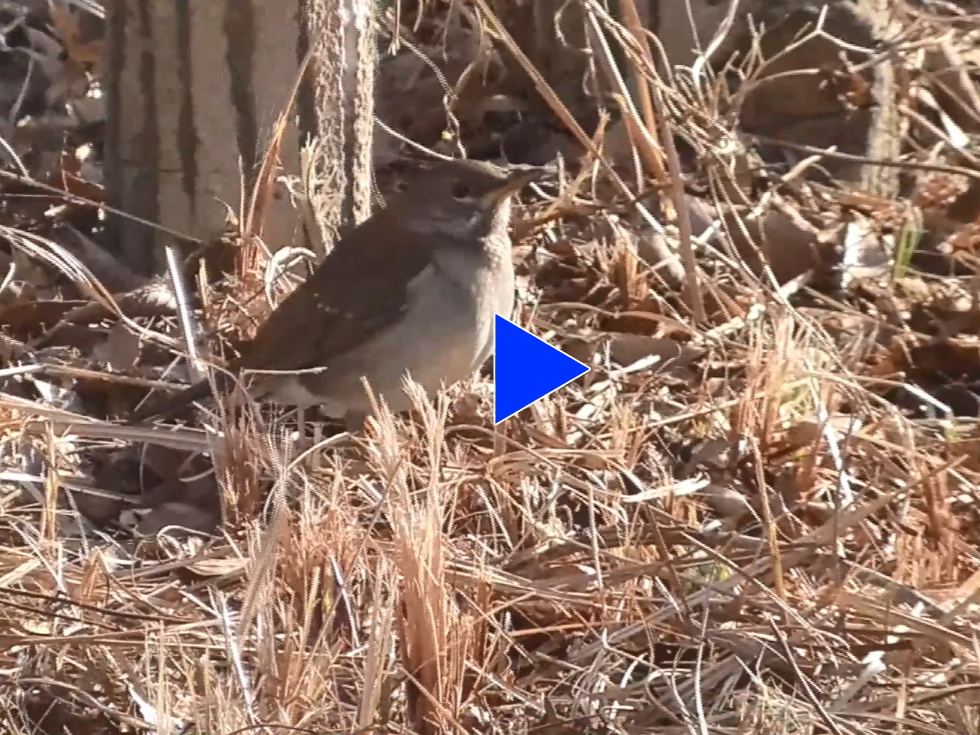 片倉城跡公園定期カウントにて ひなたぼっこ 落ち葉の中で採餌するシロハラ