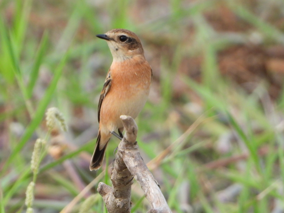 午後4時頃、河畔の草叢から飛び出してきて近くの枯れ枝に停り、1,2分上空を気にする様子でした。