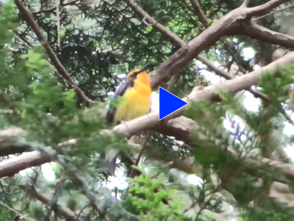 表高尾夏鳥調査にて 枝にとまり、盛んにさえずるキビタキ