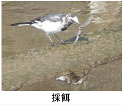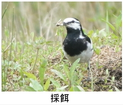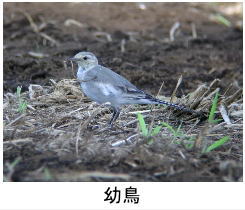 解説:当地では最も普通に観察されるセキレイである。水際だけでなく、田畑や市街地などでも見かける。白い体に、頭から背、尾にかけて黒い部分があり、白い顔に黒い過眼線がある。セグロセキレイと似るが、頬が白いことで識別できる。幼鳥は、成鳥では黒い部分が概ね灰色となる。冬季、駅前などの人通りが多く、明るい場所にある木や建物に集団ねぐらをつくる。