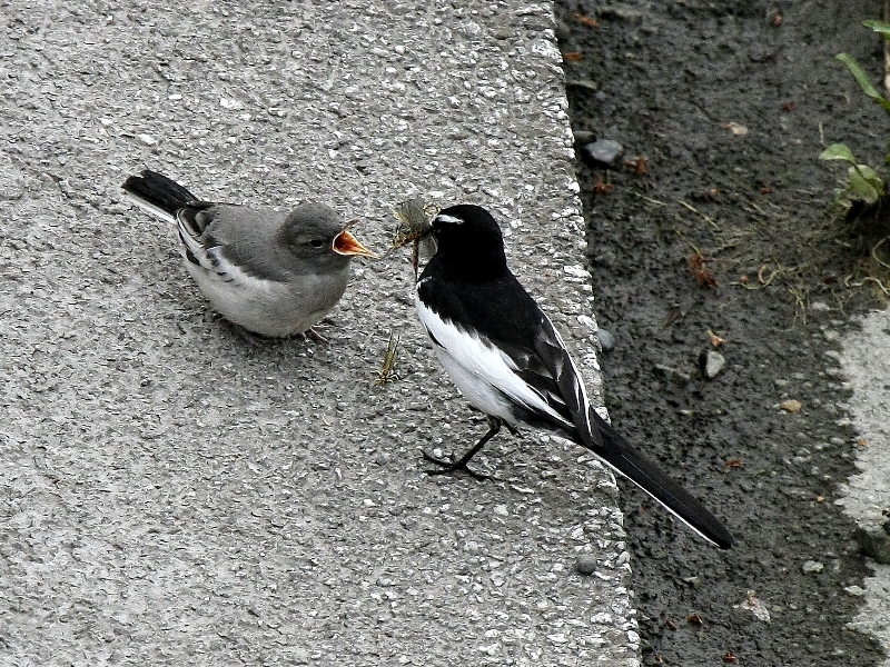 大きな口を開けて待つ雛に大量の羽虫を与える親鳥。 親も大変です。